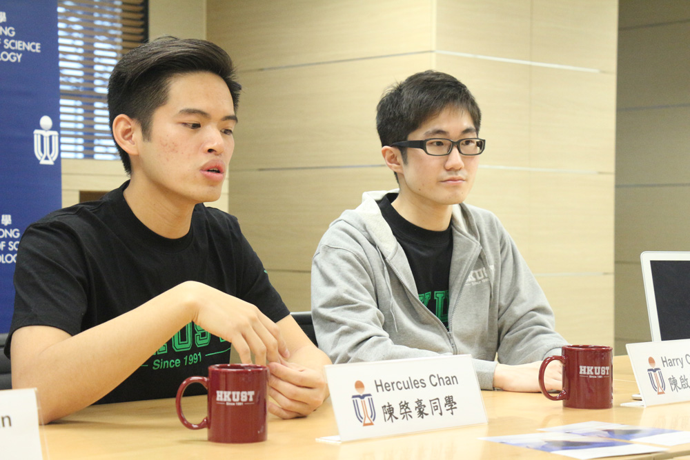 圖左起:陳棨豪及陳啟濠設計「科和催眠服務裝置」手機應用程式奪得「最佳學生發明獎」/大公報記者楊州攝