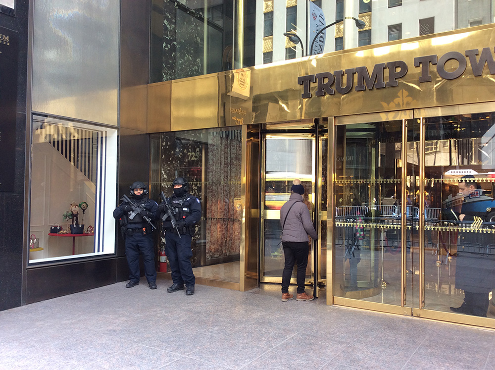 圖:特朗普大厦門前安保荷槍實彈\作者供圖