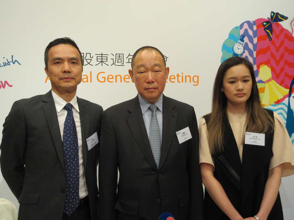 圖:(左起)利福國際財務總監潘福全、主席劉鑾鴻、執行董事劉今蟾\大公報記者李潔儀攝