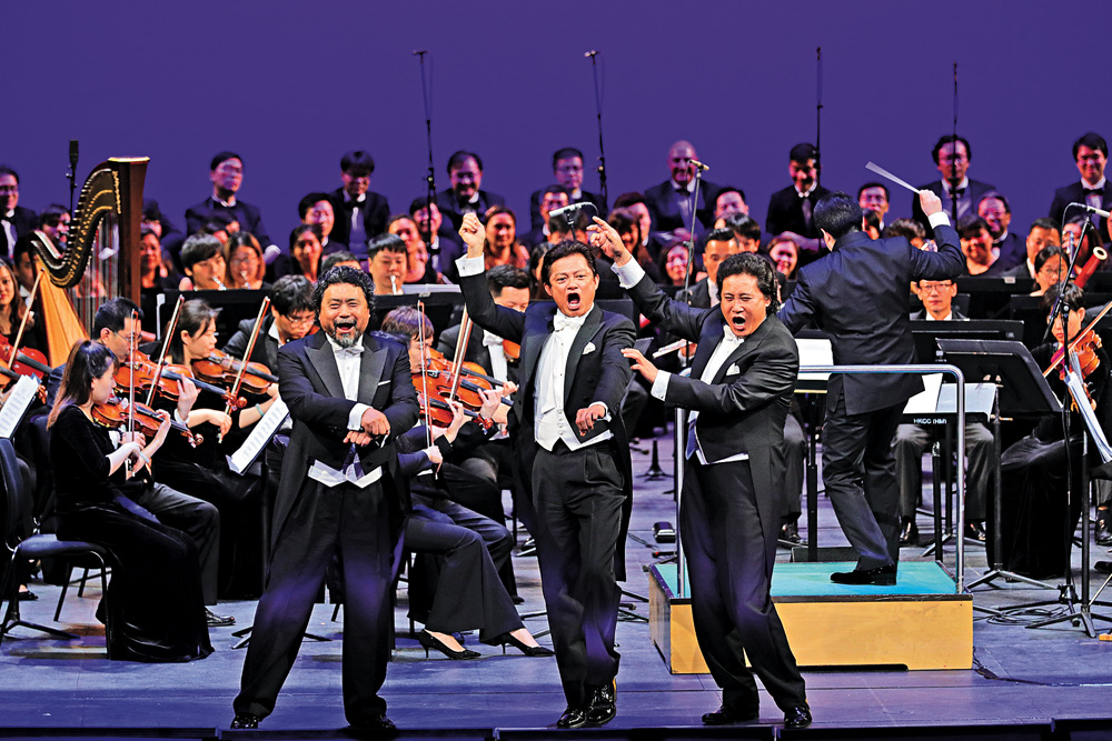 【大公報訊】記者湯艾加、劉榕欣、梁舒婷報道:為慶祝香港回歸二十周年,香港歌劇院與香港北京交流協進會主辦的「中國三大男高音音樂會」前晚在文化中心大劇院上演。中國三大男高音(「三高」)莫華倫、戴玉強和魏松為香港觀眾獻演多首耳熟能詳的歌曲,共唱回歸諧鳴。