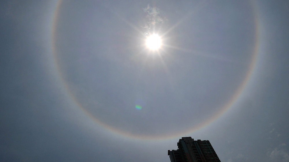 天文台表示,「日暈」懸浮於雲層大氣中的冰晶,折射陽光而來,主要呈環狀或弧狀,本港一年平均出現3至10次,春夏季較多出現。