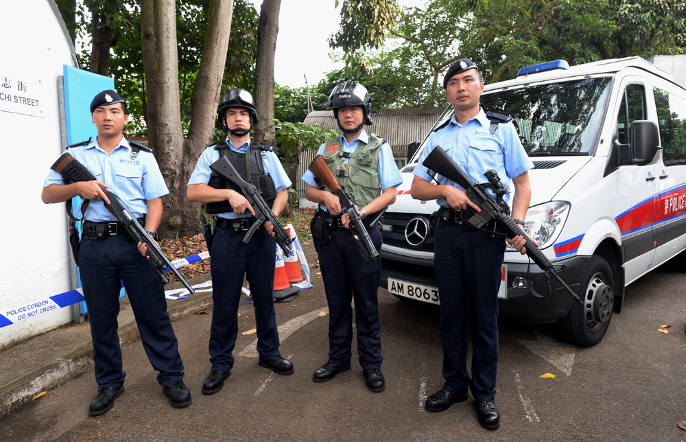 當需要制伏手持武器、情緒激動或精神紊亂的人士時,警員會穿上俗稱「黑人裝」的戰術保護衣,頭盔淨重4.6公斤(約12磅),每輛衝鋒車上常備一套,有需要可從警署補充。