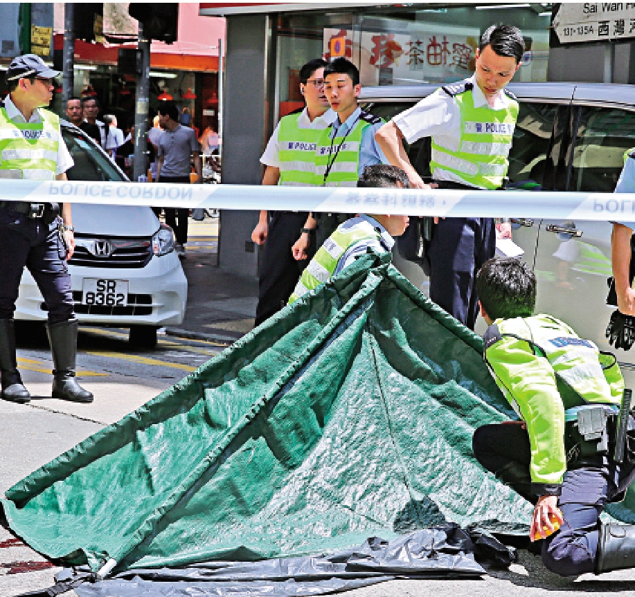 圖:西灣河街車禍,過路婦被貨車輾斃,警員到場搜證