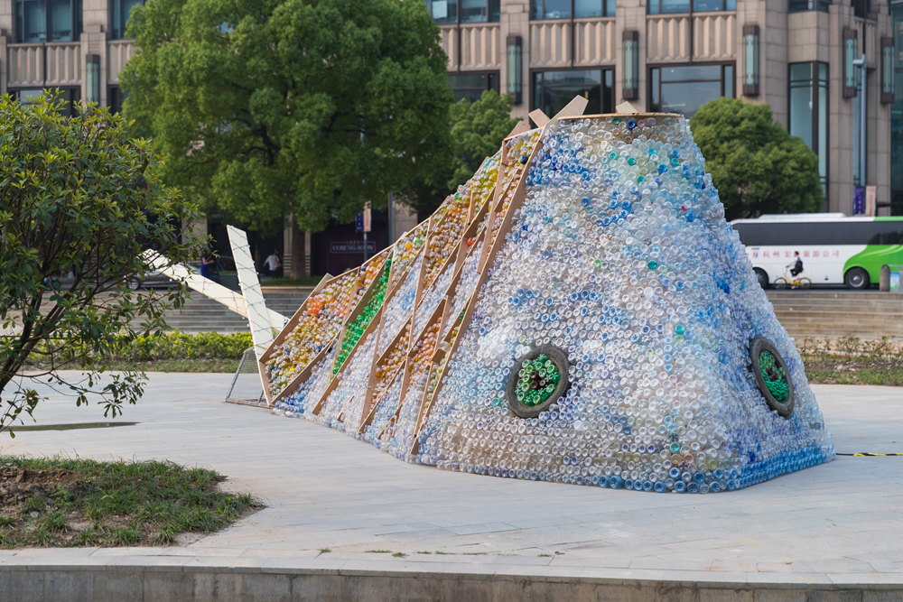 為了呼籲環保理念,在今年的新天地藝術節上,來自英國的藝術家尤恩.埃里森用6000多個廢棄塑料瓶,與上海居民、志願者共同完成了環保裝置藝術作品「大魚」。