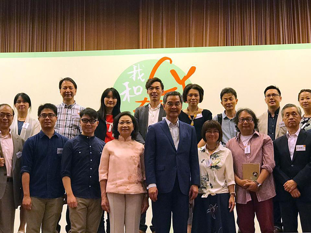□行政長官梁振英與太太梁唐青儀,昨日出席香港齊心基金舉行的「我和CY有個約會」茶敘。幾百名社會各界人士出席,與梁振英交流和合照。有與會者引述梁振英說,五年的特首任期有滿足感,對房屋及扶貧工作感受最深,又指未來不會停步,會為香港及國家更加努力。出席者亦獲贈《這個特首不太冷》一書,當中有全國政協副主席董建華等人的訪問。董建華稱不少人誤會了梁振英,形容梁是「難得的好人」、「真真正正愛香港」。