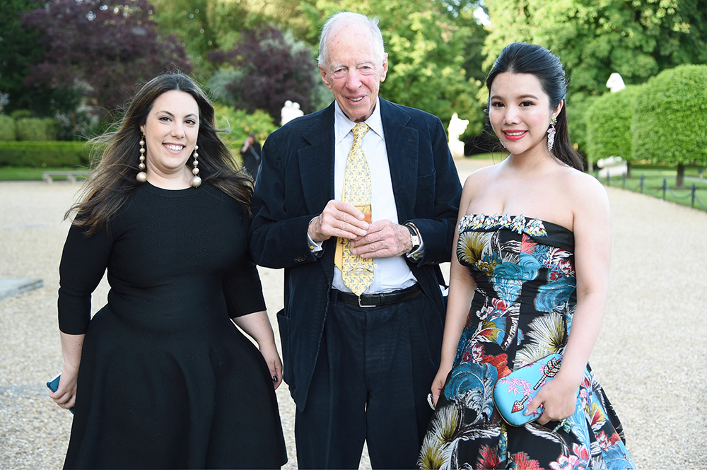 圖:(左起)時尚設計師瑪麗.卡特蘭佐、羅斯柴爾德男爵、中國女投資人余晚晚合影 羅斯柴爾德家族供圖