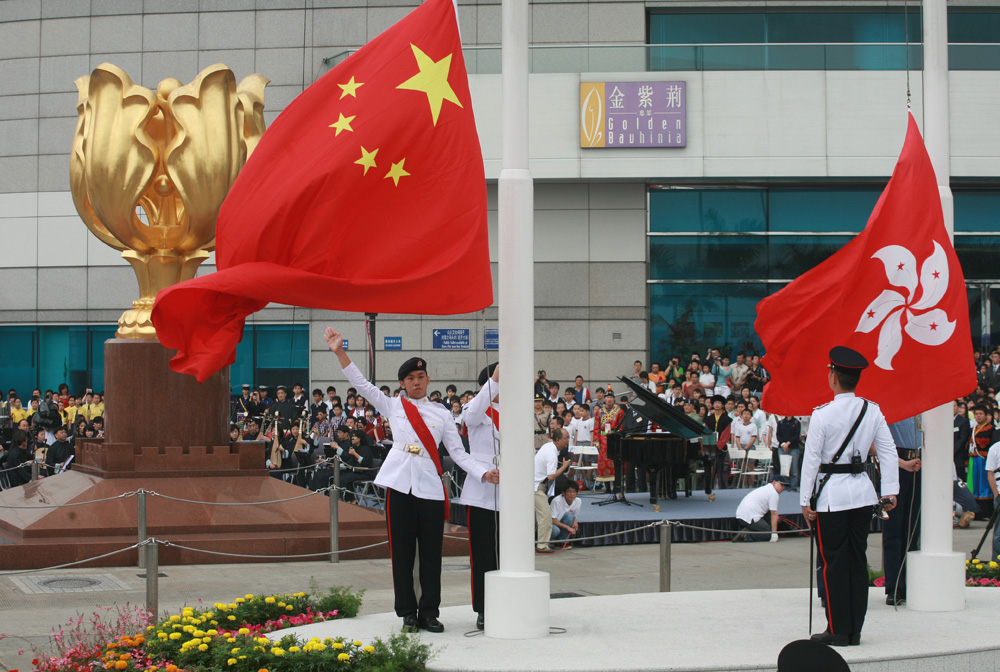 圖:區旗用紅白兩色設計,紅色代表中國,而紅白兩色就代表着「一國兩制」的意思