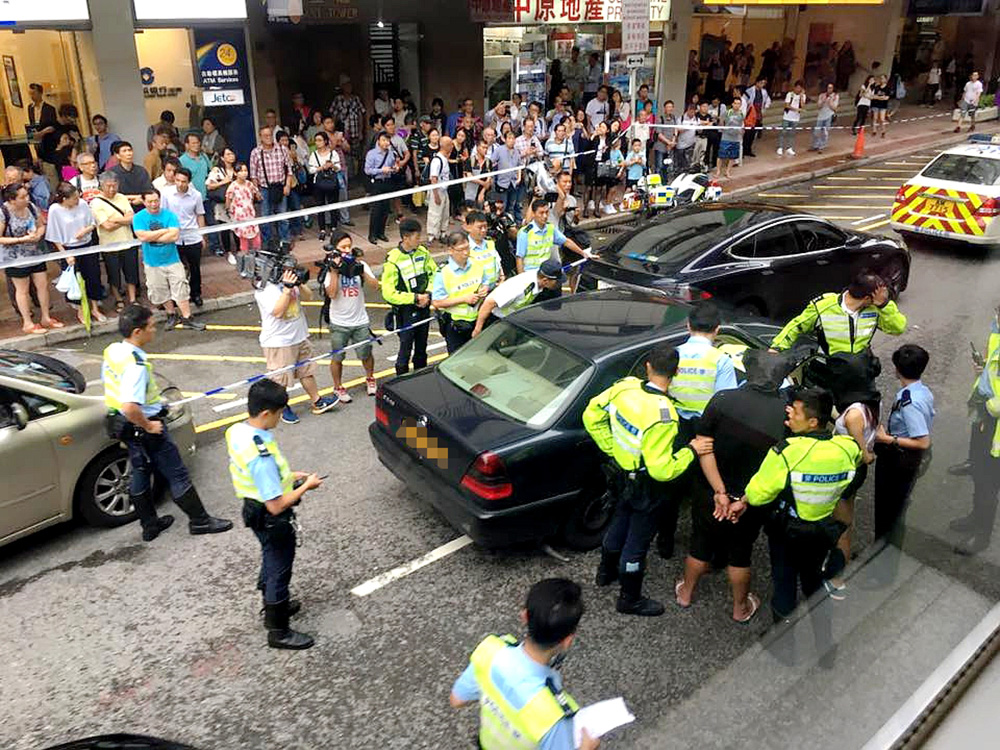房車經沙田獅子山隧道狂飆14公里,至沙田正街對開時,因交通擠塞無法前行,司機企圖撞開三輛車突圍,但未有成功,被追至的十多輛警車重重包圍,多名警員落車拔出警棍及按着槍袋戒備,氣氛緊張,警員先後將女乘客拉出拘捕,再拖出男司機按地制服,警員除在房車車內發現懷疑吸毒工具外,揭發該車為去年報失,並掛上假車牌行駛,兩人被帶署通宵扣查,案件由沙田警區刑事調查隊跟進。