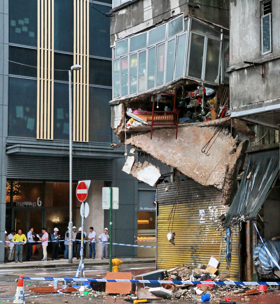 屋宇署下午派工程車到場,拆除懸空石屎後,臨時封閉唐樓地下至三樓,進行臨時支撐工程,預料明日完成。屋宇署總屋宇測量師梁志添認為,假如業主正視修葺令立刻處理,露台可能不會塌下,但仍要深入調查,才能確定原因。