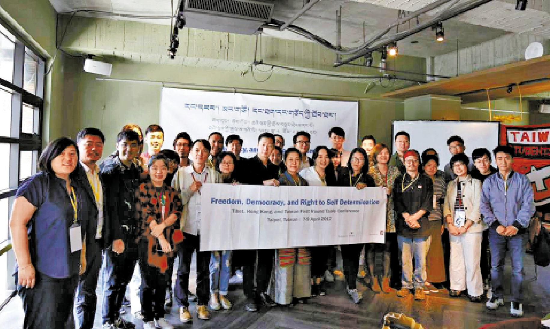 圖:本年四月,梁頌恆(後排右五)及游蕙禎(前排右七),偕同學聯前秘書長周永康(前排左三)等人赴台,密晤「藏獨」及「台獨」組織,還參與「藏獨」團體主辦的會議
