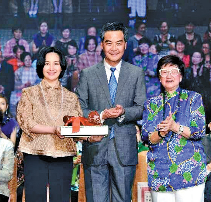 圖:左起:何超瓊、梁振英、林貝聿嘉出席「香港婦女協進會」主席交棒儀式