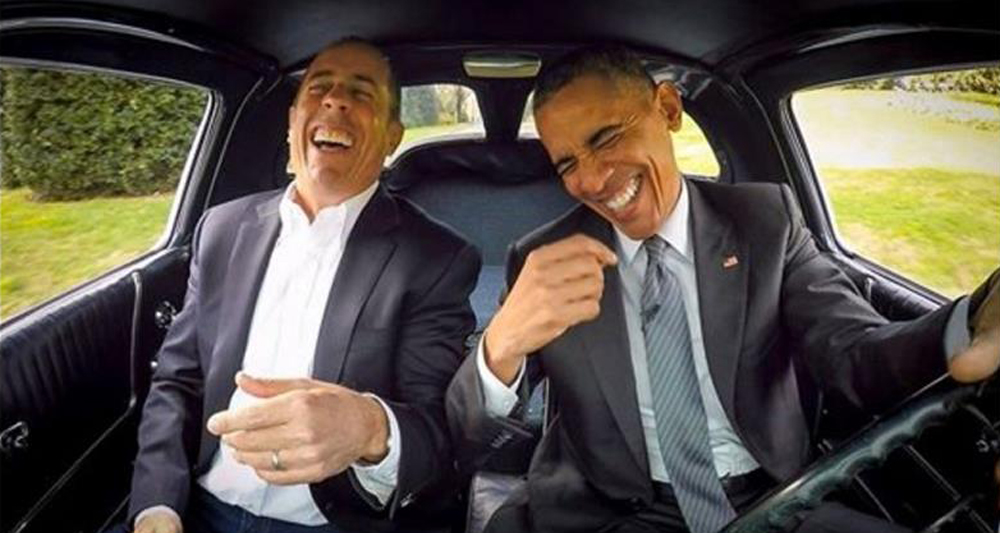 【大公報訊】據NPR、Vox報道:美國總統奧巴馬在諧星宋飛(Jerry Seinfeld)網路電視劇「諧星乘車買咖啡」中現身,一同喝咖啡閒聊,不只爆料自己只穿一個牌子且同顏色的內衣,還直言「相當大比例」的世界領袖可能都瘋了。