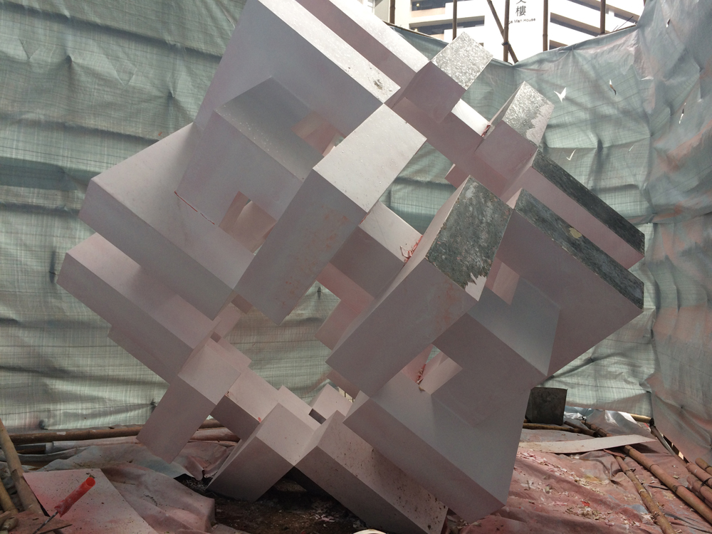 何文田房屋委員會總部大樓外的紅色立體標誌向來是房委會「嘜頭」,亦是團體請願、電視台記者「做扒」的必備背景,但這個地標近日被棚架及帆布圍封,從縫隙往內一看,紅色立體標誌竟然變成白色,莫非房委會「嘜頭」要變色?非也!原來只是房屋署定期為標誌重新油漆,而油新漆前需先除去原來的舊紅漆。房屋署發言人昨日稱,由於近日天雨及濕度較高,而且髹漆工程須安排於星期六及日進行,以減少對公眾的影響,預計尚需約兩星期才可完成。