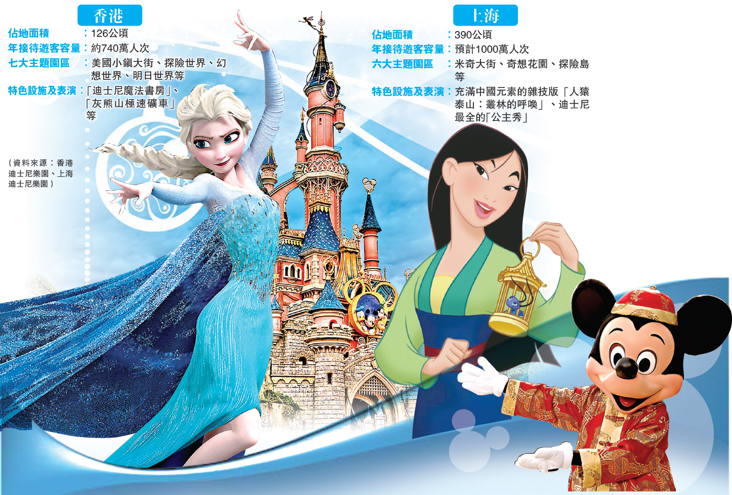 【大公報訊】唐老鴨和花栗鼠打「唐式太極拳」,人猿泰山借助中國雜技綢吊功夫「談情說愛」,花木蘭或將在夜光幻影秀中「攀」上奇幻童話城堡……上海迪士尼度假區5日公布首份園內演出「菜單」,盡顯中國風情。滬迪園有望今年春季開幕,勢必將分流來港遊客。