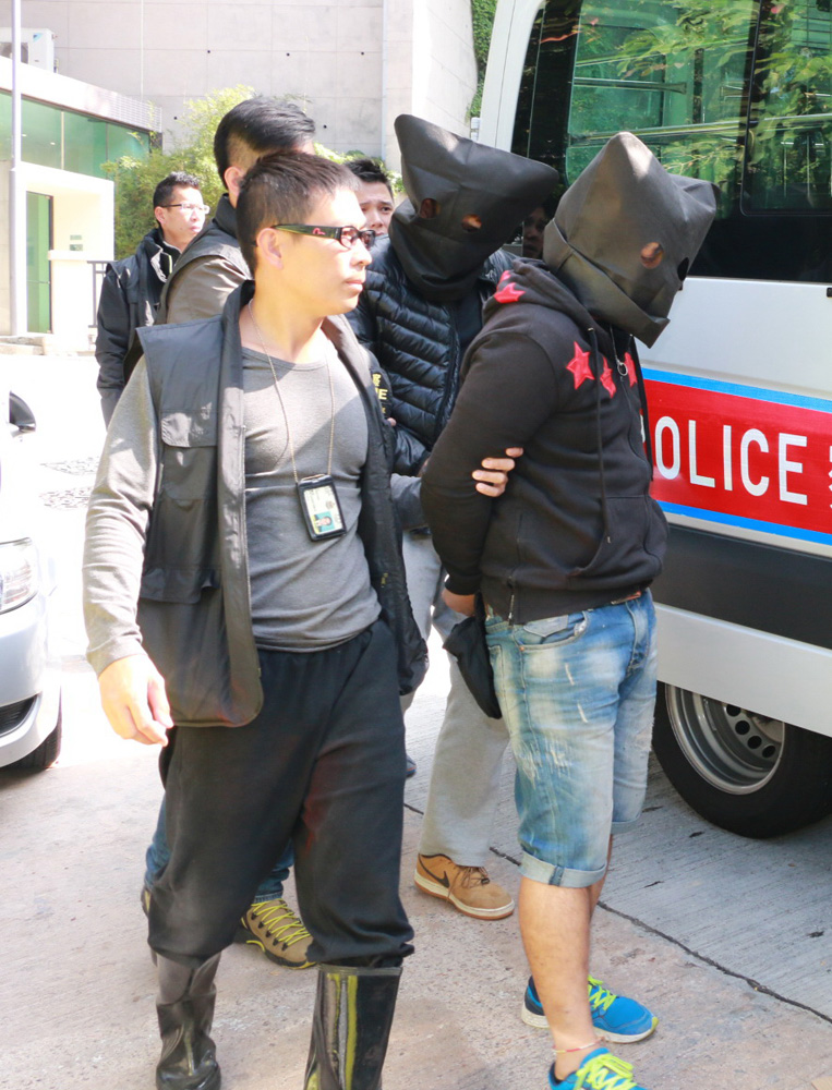昨晨11時許,一輛目標客貨車駛至該地盤外,車上三人下車向地盤工人售賣飯盒,另外四人則在現場把風及「晒馬」,喬裝的探員見時機成熟立即上前拘捕七人。經調查後其中四名「晒馬」男子涉嫌非法集結,另三名售賣飯盒男子,當中兩人疑與早前毆打案有關。被捕七人年齡介乎15至37歲,他們涉嫌「刑事恐嚇」、「自稱三合會成員」等罪名被捕。現場消息稱七名男子疑有黑幫,15歲的為「雙失」少年。