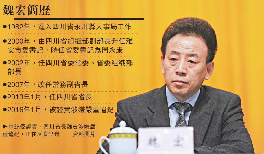 圖:中紀委證實,四川省長魏宏涉嫌嚴重違紀,正在反省思過 /資料圖片