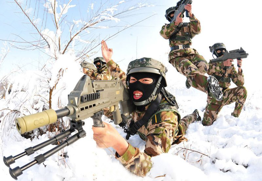 圖:烏魯木齊邊防官兵在雪地進行激光槍捕殲戰術訓練  /資料圖片