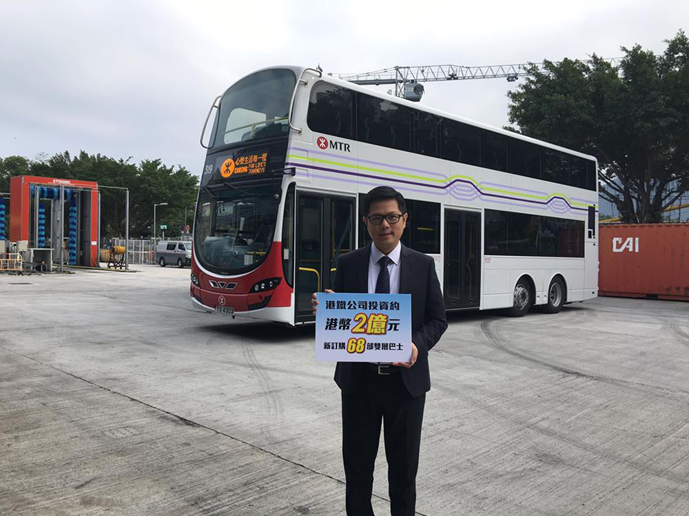 他表示,預計全數68輛新巴士將會於2017年底前全部投入服務,預計可以提升12%載客量,新巴士主要為新界西北服務,但港鐵會因應需要靈活調配。新巴士型號為富豪B9TL,由瑞典公司富豪於馬來西亞製造,巴士備有低地台設計,方便輪椅乘客,上層擋風玻璃上端塗有深綠色顏料,阻隔陽光直照乘客,且於車頭位置設樹擋,方便巴士於新界區行走。