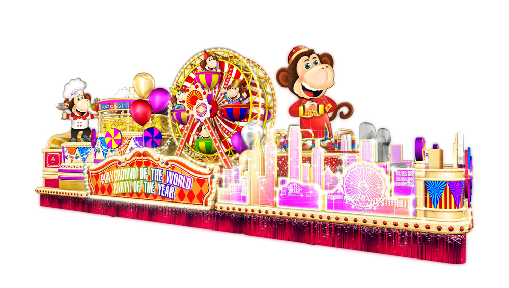 圖:今年旅發局花車以「環球樂園.新春派對」為主題,主角當然是猴子       旅發局圖