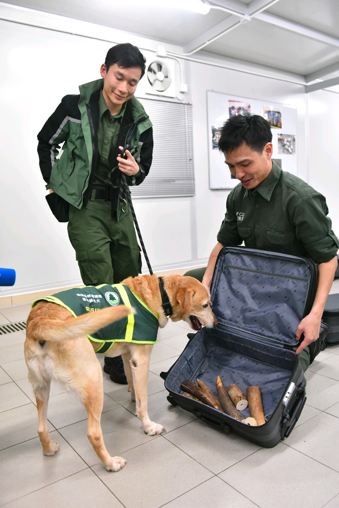 【大公報訊】記者吳卓峰報道:除了海關有「緝毒犬」之外,原來漁農自然護理署都有「檢疫偵緝犬」,協助堵截非法象牙、乾海馬及穿山甲鱗片等瀕危物種製品,以及阻止活生動物非法入口本港。偵緝隊現時有九隻偵緝犬,每日於各口岸突擊嗅查旅客行李及貨物,過去兩年共協助偵破22宗非法進口象牙案件。環境局局長黃錦星認為,偵緝犬工作有成效,政府繼續打擊相關非法活動。