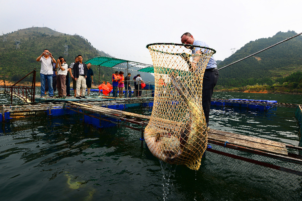 圖:廣東韶關養殖基地捕撈供港鯇魚 /資料圖片