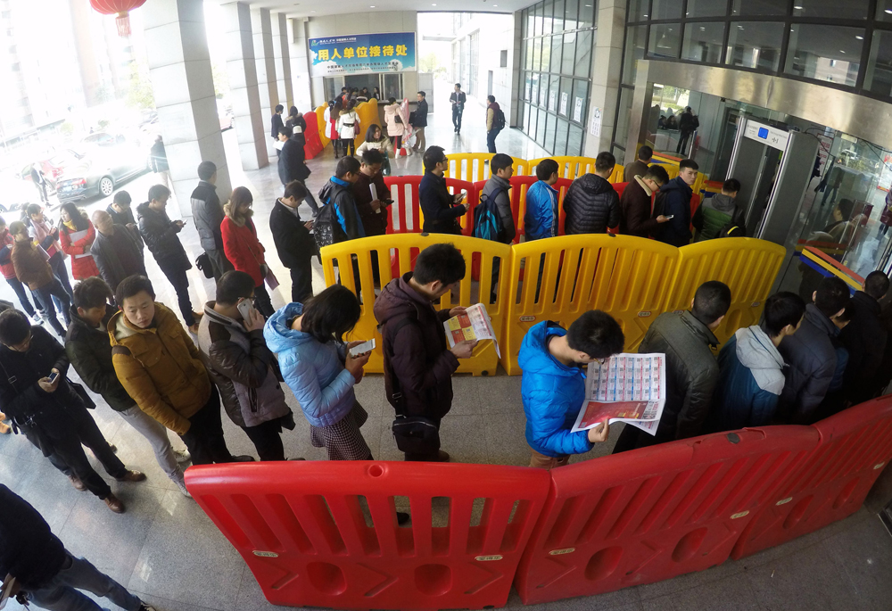 春節剛過,內地不少城市出現「用工荒」。16日,2016大型公益人才招聘會在湖南省人才市場舉行,眾多求職者來此尋覓自己理想的工作。部分招聘企業表示,目前用工「兩難」現象仍舊突出,用工單位存在用人缺口,求職者也難找到稱心的工作。 (中新社)