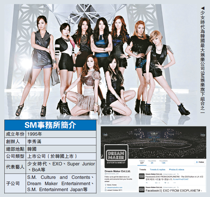 圖:少女時代為韓國最大娛樂公司SM娛樂旗下組合之一