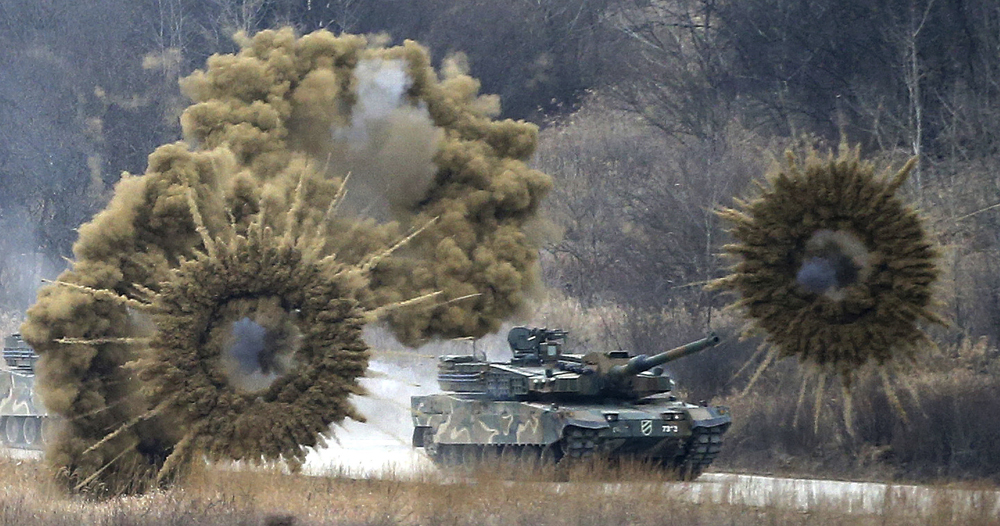 圖:韓軍18日進行實彈演習,K-2坦克發射炮彈/美聯社