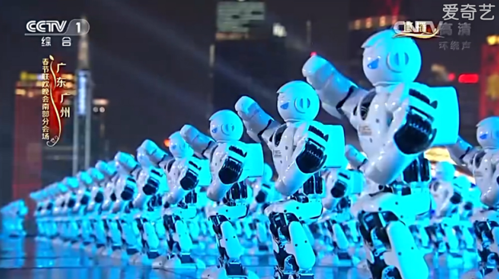 圖:央視春晚直播中表演舞蹈的540個阿爾法機器人 視頻截圖