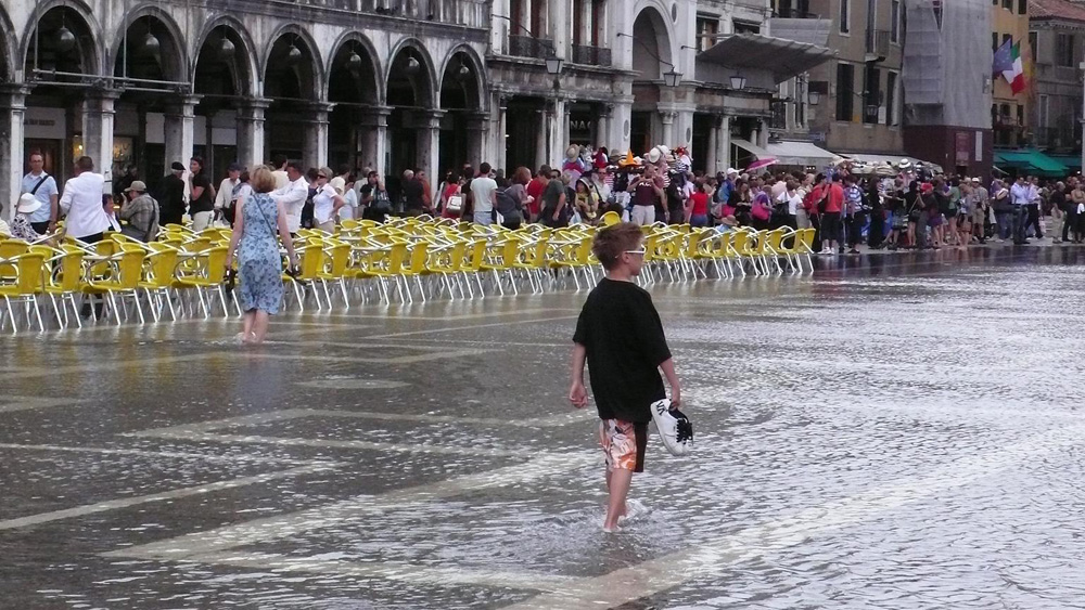 圖:威尼斯夏天偶然也會潮漲,人們的反應多數像這小男孩,興奮地玩水