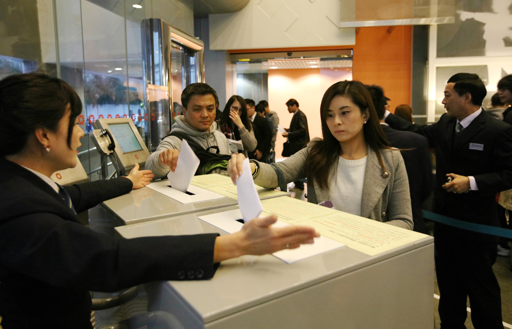 圖:新居屋昨晚截止申請,不少市民最後衝刺趕到房委會客務中心遞交申請表 /大公報記者 蔡文豪攝