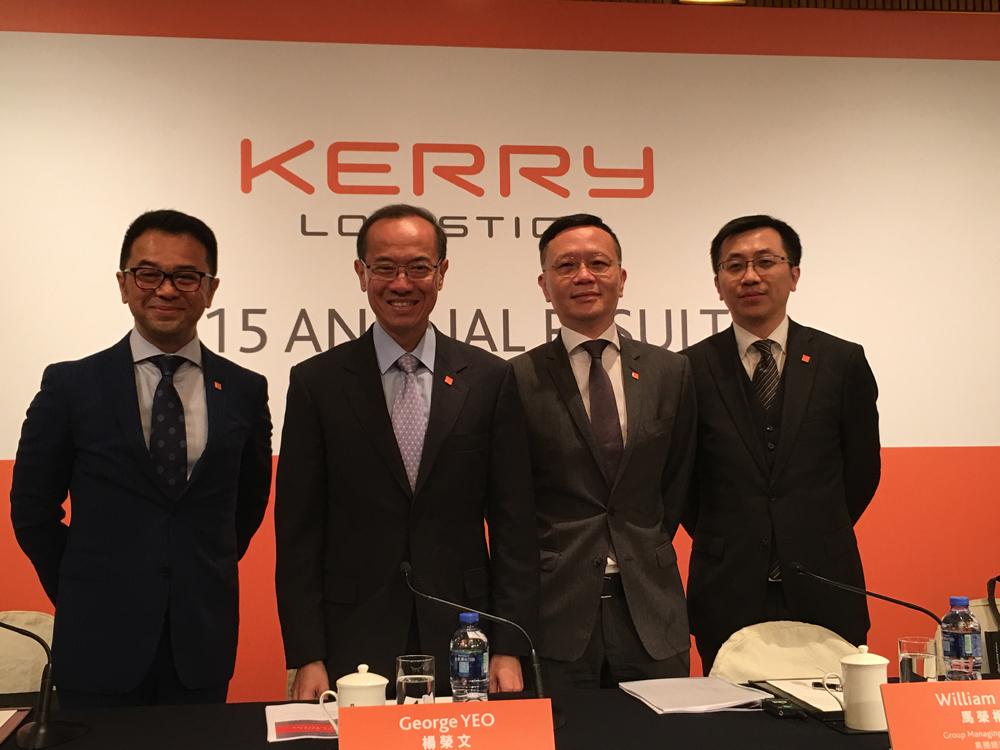圖:左起:嘉里物流執行董事兼中國及北亞總裁陳錦賓、主席楊榮文、集團總裁馬榮楷、首席財務主管鄭志偉 大公報記者林靜文攝