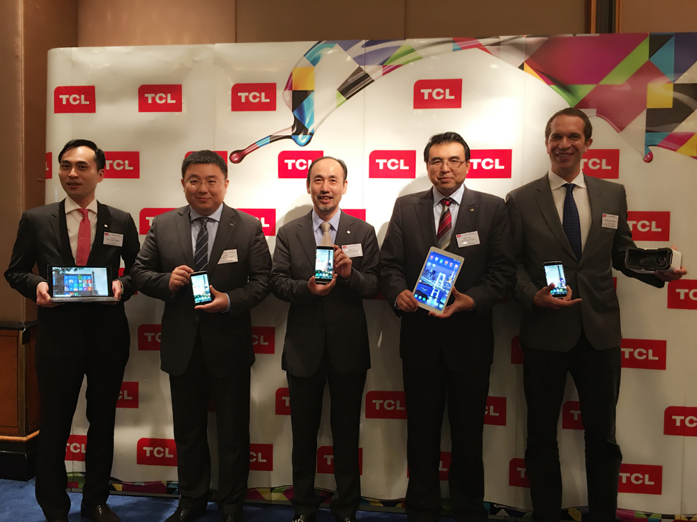 圖:左起:TCL通訊全球財務管控中心總經理王培、TCL多媒體首席財務官王軼、首席執行官薄連明、TCL通訊首席執行官郭愛平、TCL通訊國際業務總裁Nicolas ZIBELL