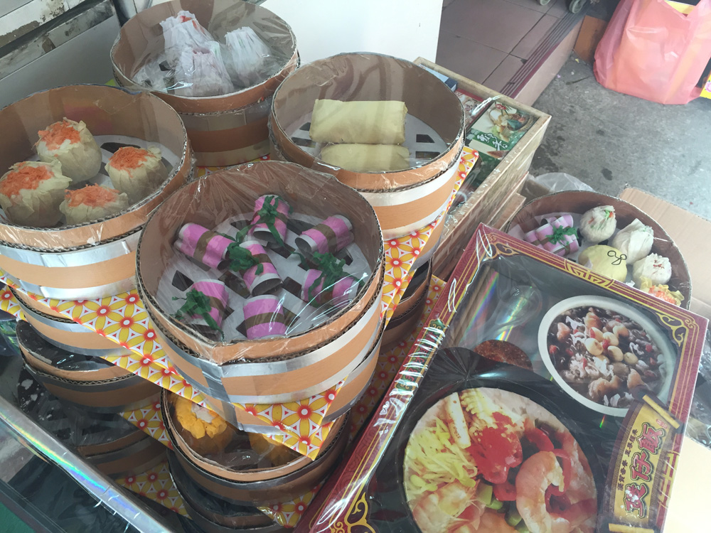 圖:紙紮舖推出新款紙紮食物,如各款點心、盆菜、鮑魚撈飯、雲吞麵等,做工均十分精緻