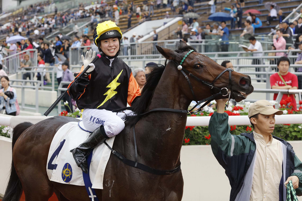蔣嘉琦昨天的頭馬分別在第2、第4、第6及第8場取得,4場頭馬為3位不同的練馬師建功。蔣嘉琦昨在第2場先憑文家良馬房的「好友心」打開勝利之門,之後到第4場夥拍由苗禮德訓練的「至尊飛星」增添頭馬進帳。到第6場1000米的直路賽,蔣嘉琦主策另一匹苗禮德馬房的賽駒「快寶駒」,沿途在跑道中央走勢強勁,衝線時力拒來犯,取得其昨天的第3場頭馬。接戰至第8場北京會所周年杯,蔣嘉琦夥拍告達理旗下的「閃電王」,自第14檔起步後沿途於前列位置競跑,末段猶有餘勁,以勁勢衝線奪魁。在第10場賽事,蔣嘉琦策騎徐雨石馬房的「勁嘉輝」末段後追甚勁,衝線時僅不敵「好易搵」屈居亞軍,幾乎可一天5捷。經過昨天的賽事後,蔣嘉琦季內的頭馬數目增加至13場。現年23歲的蔣嘉琦,在新西蘭已作多次上陣,並且在當地贏得44場頭馬,她於去年9月在港開始策騎。