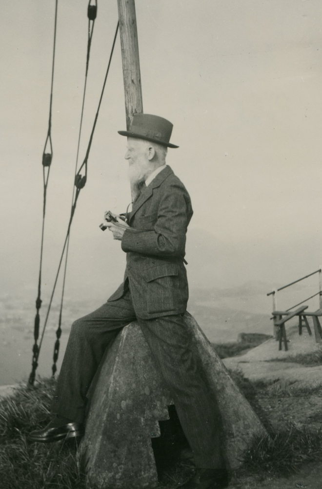 圖:蕭伯納在香港太平山山頂遠眺維港景色/倫敦政治經濟學院圖書館資料
