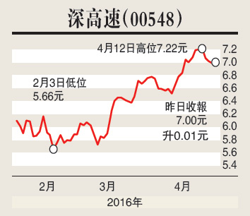 深圳高速公路(00548)所經營及投資的收費公路項目合共16個,分布在深圳地區、廣東省及中國其他省份。深高速業務穩定,今年首兩個月,日均車流量全部上升9.6%,日均路費收入升8.5%,表現理想。