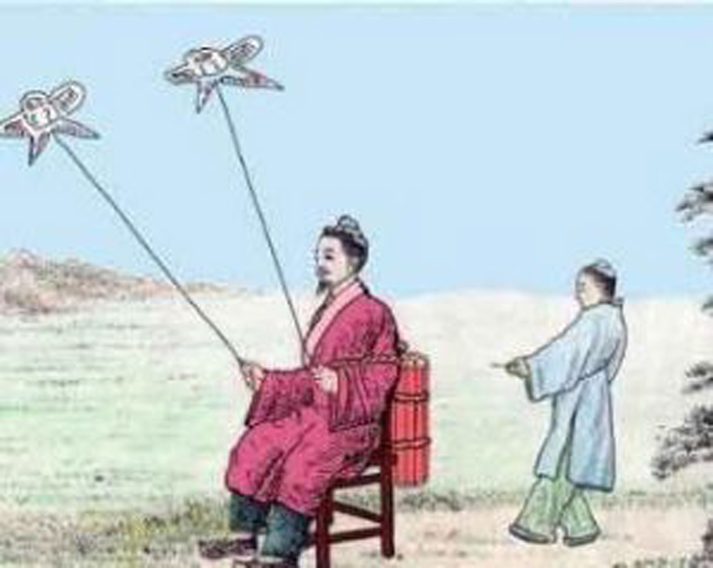 萬戶原名陶成道,曾以火器神技藝幫助明朝開國皇帝朱元璋開天下,後來朱元璋授他萬戶官,後人遂稱其為「萬戶」。晚年間,萬戶曾把47枚小火箭綁在?子上,自己坐在上面,雙手各持一個巨大的風箏。他打算利用火箭點燃後的反推力和風箏的升力,把自己送入太空。