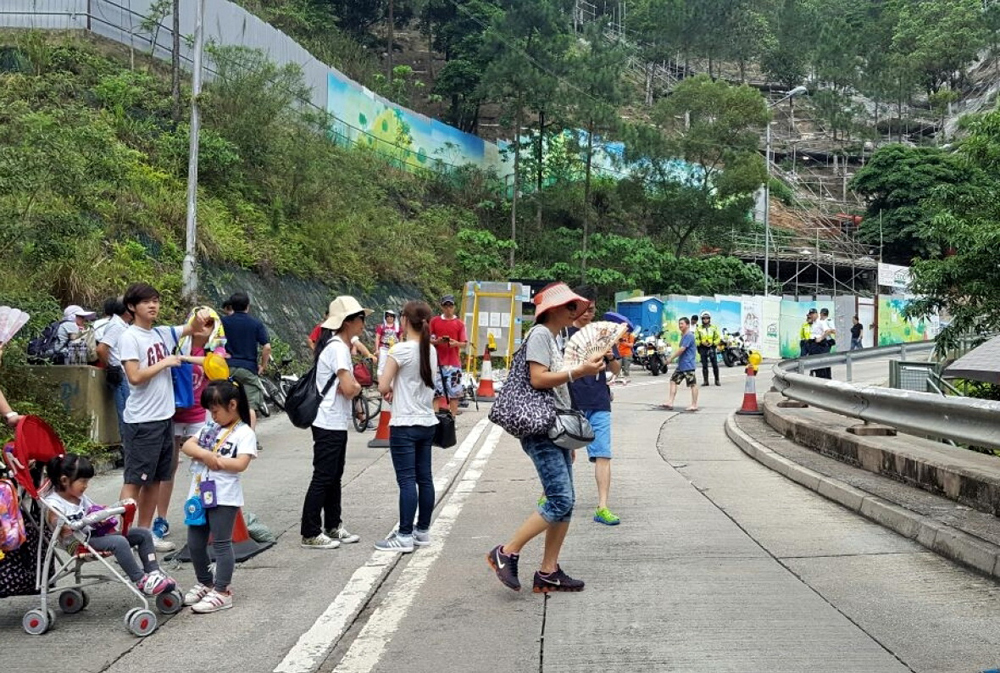 據悉,造成交通癱瘓是約50名大嶼山村民不滿假日上址人車爭路情況,在羌山道近深屈道堵路示威,令羌山道來回一度完全無法通行。大批警員趕至現場了解,與村民協商,車龍一度由深屈道延至水口村,上山車龍一度長達五公里。
