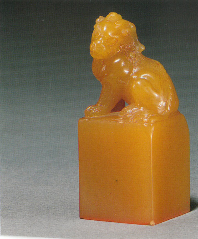 明、清迄今,名家精雕的福建壽山石印章,上品及極品石材者(如特級「田黃」)、水坑「天藍凍」、百年稀珍「魚腦凍」等),收藏家皆作珍藏與玩賞,絕少雕成篆刻私印或閒章粗用。尤其是一些「薄意」及精雕印鈕者,更富觀賞價值。例如附圖,乃清代初期以優質凝靈溫潤的「黃芙蓉」壽山石,雕成獸鈕方印;色肖上等「黃金黃」之「田黃」,工藝精絕。