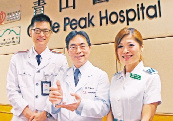 圖:青山醫院成人精神科部門主管林明(中)展示醫管局頒發2016年度傑出團隊獎狀/大公報記者謝進亨攝