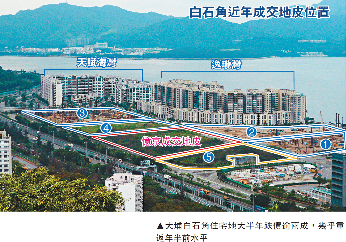 圖:大埔白石角住宅地大半年跌價逾兩成,幾乎重返年半前水平