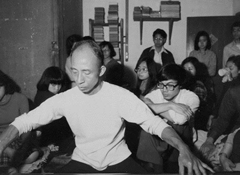 圖:一九七八年,葉世強(前)搬到新店灣潭山村,開始隱逸的生活,他的學生經常會乘搭渡船到他的工作室聽他講課及欣賞他的古琴演奏 主辦方供圖