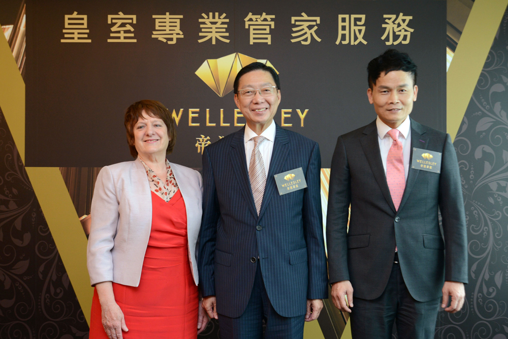 圖:孫國林(中)與林達民(右)表示,帝?豪庭特別聘請英國白金漢宮皇室管家培訓導師Patricia Paskins,向管理公司提供專業管家證書課程,從而為住客提供英式管理服務,給予住戶無可比擬的生活體驗