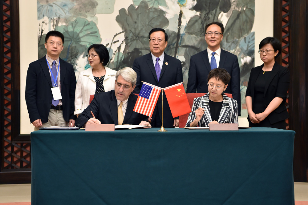 圖:6日,國家留學基金管理委員會與美國耶魯大學簽署諒解備忘錄\新華社