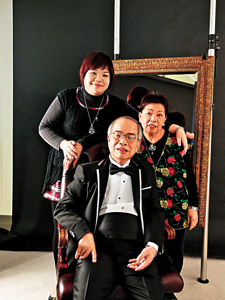 圖:盧國沾(前)拍攝海報照片那天,太太(後右)和女兒陪伴在側/新娛國際供圖