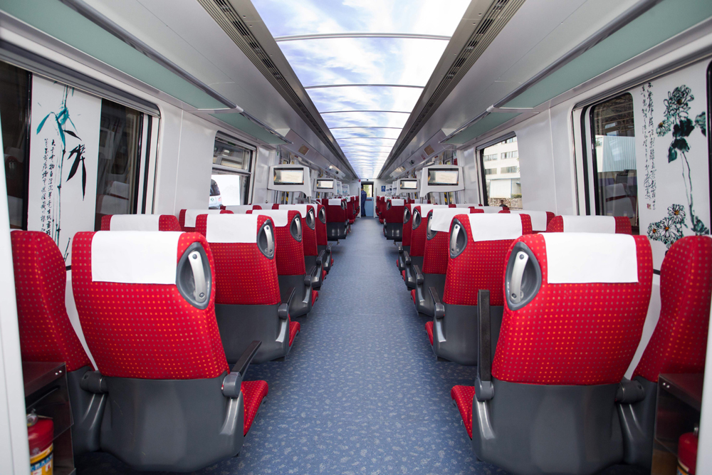 圖:深圳地鐵首設商務座,頭頂有藍天白雲的頂燈\大公報記者黃仰鵬攝