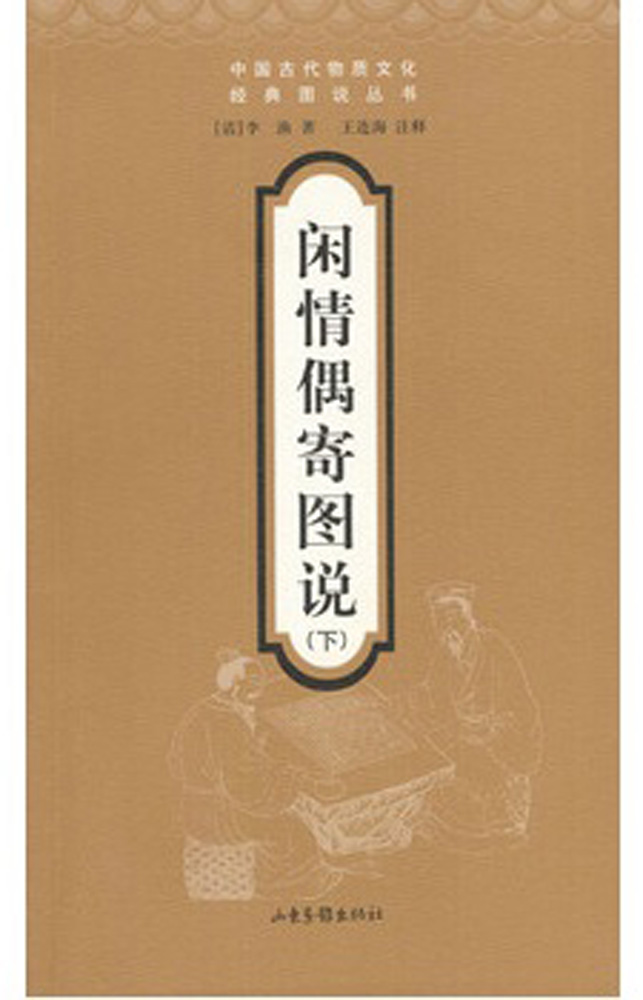 李漁的《閒情偶寄》版本很多,我認為最好的版本是《李漁全集》第三卷﹙浙江古籍出版社,一九九八年﹚。另外山東畫報出版社二○○三年出版的《閒情偶寄圖說》上下冊,圖配文,也值得欣賞。本書亦有法文譯本。