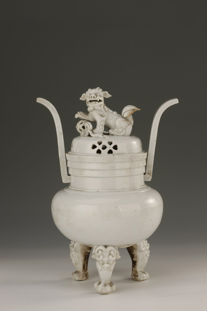 圖:德化?白釉雙耳三足爐(清乾隆)