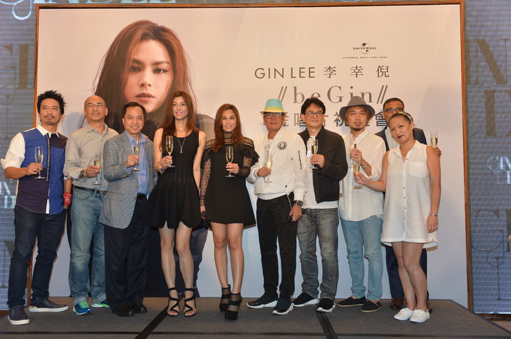 圖:Gin Lee(左五)獲唱片公司辦祝捷會,慶祝其新專輯成績理想